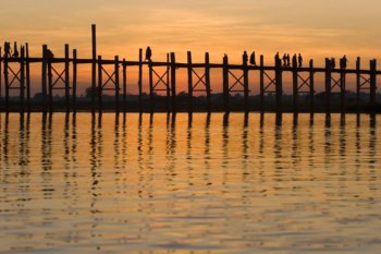 ancient capitals:Amarapura, Ava and Sagaing. Your journey into the kingdom's regal history will take you to the country's largest monastery, a workshop where colourful silks are woven, and the ruined remains of the Royal Palace. Cross-ing the Irrawaddy in the afternoon, you'll be transported to Sagaing, a city with more than 600 ivory-hued pagodas,before ending at the U Bein teak bridge. Overnight: in Mandalay
