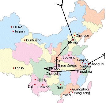 BEIJING, XIAN, DUNHUANG, TURFAN, URUMQI, KASHGAR, & SHANGHAI.